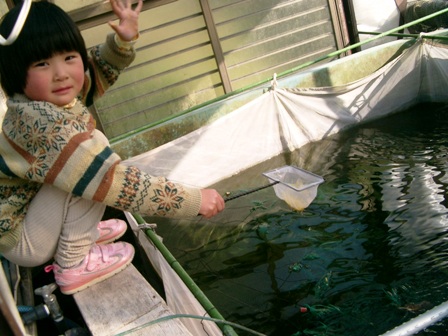 本日お昼に、1cmほどに成長した毛仔を、産卵池より稚魚池に放養しました。 様子見のため、3万匹ほどを放養しました。 残りの大半の毛仔たちは、産卵池にて待機。 稚魚池放養組は皆、ミジンコを突っつき、元気に池を泳いでおります。 この調子ですと、他の待機組も放養できそうです。 暖かく、ミジンコもウジャウジャ徘徊する、よい日に放養ができました。 若鯉の全国展の前に放養するか、後にするかで悩みましたが、本日に定めてよかったように思えます。 正井養鯉場 http://sanke.ojaru.jp 3月10日に今期初の大正三色のセット。 翌朝に産卵。 その後、大量に孵化し、黄身をやり続ける日々。 本日お昼に毛仔を稚魚池に放養。 写真は、毛仔に黄身をやる係員さんです。 正井養鯉場 http://sanke.ojaru.jp 実は、我が家には、もう一人子供がいていたのです。 昨年の7月16日に我が家にやってきた、 6月4日生まれのイングリッシュポインターの「正井リオ」です。 まだ、生後八ヶ月なのですが、 雑種犬の熊楠姉さんなんて、三ヶ月もしないうちに体格は追い越され、 今は、ハルの身長も体重も追い抜き、 キクもリオが二足で立つと危うい。背丈が。 もちろん、体重はキクの方が勝っているのは言うまでもない が… この仔、一体どれくらい大きくなるのだろうか… 立鯉同様に、大きく育てようと食べさせすぎなのか… 熊姉さん、ハル姉さん、末っ子への教育的指導よろしくお願いします!! 正井養鯉場 http://sanke.ojaru.jp |