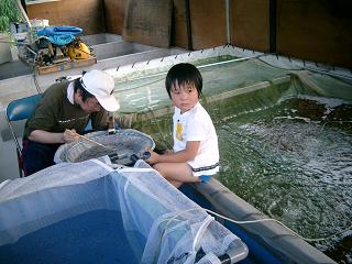 × [PR]上記の広告は3ヶ月以上新規記事投稿のないブログに表示されています。新しい記事を書く事で広告が消えます。 まさに怒涛の日々が続いております。 パワーで押し切るしかありません。 まだ以前記したブログでは、造っている途中でした選別小屋も、お蔭様で16日に完成しました。 17日から3泊4日で、北海道より見えられたアンドーさんと、18日より白雪姫の仔の育つ稚魚池(山)の網曳き・選別を2日間で致しました。 5万匹→4500匹を再び(山)に放養しました。 また、20日午前中に稚魚池Kiの網曳きをし、選別。 22日に1300匹を再び放養。 20日のお昼にアンドーさんが神戸空港より帰路へ。お見送りに♪ 丸三日間、選別を楽しまれ、北海道へとお帰りになられました。 暑い中、本当に本当にお疲れ様でした。 錦鯉を愛する方々にとっては、選別作業中は、暑さ湿気もなんのその…なんですね。 感心してしまいます。 またのお越しを心よりお待ちしております♪ 愉快な時間をありがとうございました♪ ところで、子どもたちに夏休みがある理由がよくわかります。 厳しい暑さです。 脱水症状だけには気をつけて、水分補給に努めるようしております。 皆様、どうぞご自愛下さいませ。 写真は、アンドーさんが白雪姫の一次選別を夢中にしているところです。 アンドーさんより、「選別小屋ができたことと、谷間から吹き上げてくる風のお蔭で、そう暑くもなく選別が出来て快適だ。」との感想をいただきました。 暑い中、頑張って建てた甲斐があったね♪ 皆様も、是非快適な!?選別小屋を見にいらしてくださいませ♪ 新たに秘密基地ができている…といった風。 正井養鯉場 http://sanke.ojaru.jp PR 昨日、七月では二回目のお稽古に行って参りました。 午前中に、大正三色の産卵セットをしてから、急いでハルを保育所へお迎えに。 七月一回目のお稽古で、ハルは先生に、「次に、老松がちゃんと舞えるかのテストをします!」 と言われ、自主練に励んでいました。 テスト当日の朝も、練習していました。 正井が、「ハルちゃん、お手手ブラブラと、腕が曲がっているって、先生がおっしゃってるのん、ちゃんと直ってる?」 と、チェック係を買ってでていました。 先週から三泊四日で我が家に見えていたアンドーさんからも、 滞在中に、帰りの飛行場で・メールでと、「ハルちゃん、テスト頑張ってね!」 と、エールを送られ、頑張らなきゃと思ったのか… 試験の前に、一度確認の練習を先生がしてくださいました。 その後、「はい、本番のテストです。」 「よはいをさずくる こーのきーみーのー」 先生のお謡いに合わせて気持ちよく舞っていました♪ 先生に、「合格!」 と、太鼓判!?を押していただき、満面の笑み♪ 次に新しい曲を学ばせていただけるようです。 どんなのか、楽しみね~♪ 写真は、七月一回目のお稽古風景です。 二回目は、ハルのお稽古が終わり、キクのお稽古中に暴れまわり過ぎてか、テストの緊張から開放されてか?一~二時間ほど控えの間で爆睡していました。そのため、写真撮れずです。 正井養鯉場 http://sanke.ojaru.jp 7月5日の18時前の写真です。 あら、もう既に一階の部分の壁や柱が半分解体されている状態です。 床は使わないので、床だけ置き去りに。 6日以降の作業は、 解体した部品は、約4年前の台風で土砂に埋まったため、錆びていたり、泥が詰まっていたりしているので、泥落としと、錆止め対策として、こげ茶色のペンキを塗りました。 また、鉄骨を勝手のよいように裁断し、溶接をし… と、正井は熱い作業を暑い中やり続けておりました。 鉄骨の泥落としには、水鉄砲のようなもので、水圧で泥を吹き飛ばし、ついでに錆まで吹き飛ばしてくれる優れものを用いました。 張り切りすぎると、(というより、要領が悪いと)鉄骨の汚れだけでなく、地面にも力強く水が当たり、泥が鉄骨に跳ね返って、かえって汚れてしまったりしてしまいます。 水鉄砲の使い方のコツが分かるまで、水圧との駆け引きが続きました。 暑い中、汗と泥と水を被る作業は楽しいものです。 その作業のあと、シャワーを浴び、ハルを保育所へ迎えに行き、二人してイザお仕舞のお稽古へ~ この空間のギャップを楽しむことにより、更に日々の生活を豊かなものへと成り立たせているように思えます♪ 正井養鯉場 http://sanke.ojaru.jp 7月5日に撮影した写真です。 選別小屋造りも、折り返し地点を迎えた頃だったように思えます。 5日までに、3つの犬小屋の間仕切り(ブロック三段積む)と、選別作業場の排水の段取りもできました。 次は、小屋の本体を設置する作業です。 小屋は、今まで物置として使っていた二階建てのプレハブを、一階建てにして使うようです。 お昼過ぎからの解体でしたので、翌日とあわせ、解体に二日間かかりました。 二階の骨組みの上からの眺望は、いかがなものなんでしょうか… 正井養鯉場 http://sanke.ojaru.jp 7月3日の写真です。 選別小屋造りの風景です。 配管もされ、また、ブロックの壁も真
