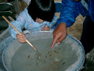 × [PR]上記の広告は3ヶ月以上新規記事投稿のないブログに表示されています。新しい記事を書く事で広告が消えます。 13日。 神戸の松泉館(六甲幼稚園)で、ハルとキクは、お稽古を開始いたしました!! ハルは、お仕舞を。 キクは、お謡いを。 浦田保親先生にご教授していただいております! 実は先週、体験入部みたいに参加し、お邪魔をいたしました。 体験入部の際、ハルは、案の定人見知りで、恥ずかしさんで無言…お声が出ない… だったので?!傍観者であるはずであったキクに、「お母さんも、お謡いどうですか?」 と、先生に勧められ、体験してみると面白く、キクもお謡いを楽しむこととなりました♪ 先週教えていただいた4つのことを踏まえて、おさらいしながら今日も新しいことを4つ学ぶといった形で進められました。 ハルは、 (復習)ご挨拶・扇の持ち方・お手手の位置と形・座り方(脚のポーズ) (新しく)「よわい」と大きな声で!・お扇子を持つ手ともう一方の手を輪にして・ぐるりを歩いていく・手の位置 「老松」を、学んでいるようです。 先週ハルは、ご挨拶さえもお声が全然出ていなかったのに、今日は途中からしっかりお声がでてきて、姿勢もお顔もビシッとシャキッとしてきて、大変化を遂げていました! とても嬉しそうです♪ お稽古に見えていらっしゃる方々に拍手まで頂き、尚更に幸せそうです♪ これでまた、憧れの親良君に近づけた!と、嬉し気で、自慢気です♪ キクは、「鶴亀」を謡ってます! 先週教えて頂いたのは、お謡本に載っている特殊表記の謡い方を4つ。「それ青陽の~おびたたし」 今日も、新たに4つ。「それ青陽の~しゃこの」 キクの謡い方は、歌会の謡い方になっていて×。一音目をまっすぐ出すということに注意を払って謡いましょうとのアドバイスをいただきました。 キクの方が、問題山積です☆頑張らねば!! 問題山積ながらも、先生から『観世流初心謡本 上 』を頂き、本当に初心で清々しい気持ちでいっぱいです♪ また、ハルと親子で楽しめるお稽古に出会えたことが、何よりも嬉しいです♪ 浦田先生にお稽古をつけていただくようになった経緯を語るには、第13回心味の会の「烏帽子折」について熱く語らないと始まらないのですが、ちょっと只今正井同様、キクも殺人的スケジュールのため、来週に譲りたいな~と思ってます。 ではでは~ 正井養鯉場 http://sanke.ojaru.jp PR 6月10日の午後から12日の午前中にかけて、一腹目の大正三色の二次選別を致しました。 約1万5000匹→4700匹になりました。 選別後の稚魚たちは、再び稚魚池(海)に戻し、育成いたしております。 健やかに大きく育て、無事にまた三次選別を迎えられるよう、頑張りたく存じます。 正井養鯉場 http://sanke.ojaru.jp 今日は、一腹目の稚魚の二次選別をしました。 午前中に網を曳き、午後から選別開始。 約1万5千匹を選別しているところです。 明日までに全て選別ができればいいなあと、頑張っております。 明日は、ハルの参観日です。 正井は選別を、ハルは日頃の成果を存分に発揮してもらいたいものです! 正井養鯉場 http://sanke.ojaru.jp 6月2日(月)、雨の降りしきる中、毛仔を稚魚池に放養致しました。 放養した池は、 稚魚池KaとKi、(山)、(中)の四面です。 しっかりと湧いたミジンコを沢山食べて、大きく成長して欲しいものです♪ 正井養鯉場 http://sanke.ojaru.jp 昨日6月1日、チョウザメの身体測定をしました。 毎月1日が、日曜だと気持ちよく、区切りよく測定に臨めるのですが。 去年、我が家にやってきたときより、4倍弱の背丈に、30倍以上の重さになった仔もいれば、やってきた当初とほとんど変わらない身長と体重の仔もいます。 錦鯉も、丹頂などは、柄がほぼ一緒に見えますし、一本一本の個性がわかるか?と問われると、さて、どうかしら?と、小首をかしげてしまうキクですが、チョウザメは、わかる! 肌の黒色にも、個々に艶や色の深みが違いますし、トゲの生え方も各々違うので、触った時に手に刺さる感触も違います!今回も、ハルは左親指内側を、キクは右小指外側を、チョウザメのトゲ(ナイフのような切れ方)で、切りました。鈍感で、切れたのに気づくのに時間がかかりましたが…痛みの向こうに側にある愛情も感じる!? また、人間の赤ちゃんがおっぱいを吸うようなお口の開け方をして餌を食べるので、授乳中のお母さんには、たまらない仕草かと思います。 口先の反り上がった仔もいれば、ちょっとカモノハシ似のとんがり具合の仔もいます。 よく見れば見るほど愛おしくなるチョウザメ。 可愛い仔たち。 各々どんな成長を遂げていても、無事に育ってくれたら、一番です! 今回も、チョウザメ測定係のハルが、頑張って仕事をしてくれました。 「チョウザメにも名前をつける。」と、言ってお名前をつけていました。 一番小さなおチビちゃんには、「ハート」と、名付けていました。 正井養鯉場 http://sanke.ojaru.jp |