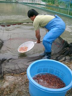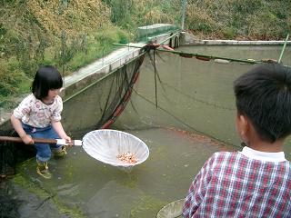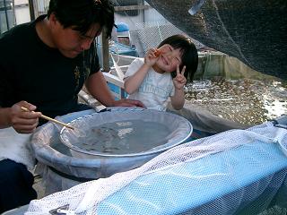 PR 5月24日に今期第二回目の産卵セットをした、白雪姫♀と、朱雀系♂は、26日の早朝に無事産卵致しました。 その後、今日30日にお蔭様で無事孵化してまいりました。 孵化して間もない毛仔(稚魚)たちは、ネットを揺り動かすと、ヒョロヒョロっと泳ぎだす、といったもので、まだまだ頼りない存在です。 昨日、農協にある鶏卵の自動販売機で、卵20個を買ってまいりました。 稚魚池も、トラクターで鋤いて鋤いて鋤きまくりました。 ミジンコも豊年エビも大発生し、さながら歓迎ムードで毛仔たちを待ち受けております♪ 次への準備は万端調っております!! 孵化した仔たち、皆丈夫に育ってほしいものです♪ 写真は、白雪姫。美白の女王、お産よく頑張ってくれました♪ どうもありがとう!!お疲れ様です! 朱雀系も、白雪姫をよく追いかけました。よく頑張りました! どうもありがとう!!お疲れ様です! 正井養鯉場 http://sanke.ojaru.jp 25日、14時より淡路島の大阪湾側にあるサンシャインホールにて、茂山千之丞狂言会が催されました。 我が家、13時過ぎまで、写真のとおり稚魚池Kaの網曳き→水槽車で移動→選別作業のセットをしていたため、慌ててお昼ご飯をチャチャっと済まし、いざ狂言会へ!! 正井に会場まで送ってもらう道中に、ハルには「仮眠をとりなさい!」と言って、少しでも体力を回復させるために寝かせました。 昨晩も、産卵セットで親が産卵池へ行って覗いたりなんだりしていたため、ハルも親鯉のことが気になってしまい、夜遅くまで起きていたという点もあり… 正井も正井で、狂言を観たいでしょうに、稚魚池Kaの一次選別を一匹でも多くこなしていかなければならず、家へととんぼ返り。本業頑張りましょう♪ そして、五分ほど遅れて会場入り。 千之丞さんが本日の曲目の見どころを解り易く解説されていました。 まもなく『佐渡狐』が始まりました。 この曲目は、「佐渡には狐がいるかどうか?」ということを越後と佐渡ヶ島のお百姓さんが互いの脇差を賭けて言い争います。その判定人は、二人のお百姓さんが京の都へ年貢を納める、そこのお奏者(収税係の役人)です。佐渡のお百姓さんは、「佐渡には狐がいると判決を下してください。」と言って、そのお奏者に賄賂を与えます。実は狐を見たことがない、と言う佐渡の人に、お奏者は、狐がどんな動物か、なりを教えますが… この曲目は、本当に就学前の子どもたちが鑑賞するのに相応しい曲目だなぁと思いました。 もちろん、賄賂の横行する世の中を皮肉も込めて、大人もドップリ笑いの世界に浸かれます♪ 狐って、どんな動物やったかな?想像できる? ハルは、「佐渡の人は、動物園に行った事がないのかな?狐は、黄色いのに、黒って言ってたのよ~!コンコンぎつねが、いないいないばぁ!のお絵本にもでてくるのにねぇ。」 「淡路島には、猪や狸はいるけど、狐はハルちゃん見たことないわ。狐、いないよねぇ。越後には鯉がいるけど、佐渡には鯉がいるのかな?」 と帰りの車の中で正井に。 15分休憩後、次に『水掛聟』(みずかけむこ)。 この曲目は、日照り続きの困った時期に起こった、お百姓の婿と舅の水争いを面白おかしく鑑賞できます。 最後に婿の女房が出てきて、夫と父の言われるままに、双方の肩を持ちますが、最終的には夫を採っちゃうという点。 う~ん、私ならどうやろう…。と、妙に選択を迫られた気分にもなり神妙な面持ちに。 一方、相手の田へと流れる水路を埋めたり、自分の田へ水の流れるよう水路を鋤で開通させたり、千之丞さんと茂さんの、その農機具の使い方の滑らかで美しい農民の仕草にウットリしました♪ 『水掛聟』、淡路島で演じられるのに相応しい曲目だと思いました! でも、案外笑い事ではなく、狂言の世界を地で行っていそうな淡路島の農村地帯かもしれません。 そこのところ、どうなのでしょうか? あと、ハルは、心味の会の『烏帽子折』で、臆病な盗賊さんを演じていた茂さんが、今回はお百姓さんになってお舅さんに水や泥をかけているので、「ドロボーからお百姓さんにお仕事替えたの?」との質問を。 「う~ん、『烏帽子折』は『烏帽子折』、『水掛聟』は『水掛聟』でお話が違うから、また別の人の役を演じてはんのよ~。」 「…。」 ハルは、理解してくれたのだろうか…。 それはともかく、蝶や鳥、大きな蕪などの柄のある、狂言師さんたちの装束を見て楽しむこともできるので、狂言は、親子共々いろんな楽しみ方のできる、魅力的な芸能だと思います。 だから、もっと沢山の方に観ていただけたらいいのになぁ、こんなに面白いのに…と昨年と同様に感じてしまいました。 淡路島でお能(狂言も含む)を観る際、京都と違うと感じる点は、見所にいる人たちの年齢に偏りがある点です。京都や大阪では、どの年齢層もまんべんなく楽しんでいるように思えます。 京都や大阪のように、いろんな世代の人たちが、吸い込まれるように能楽堂へ入っていく風景って素敵だなあ、と感じます。淡路